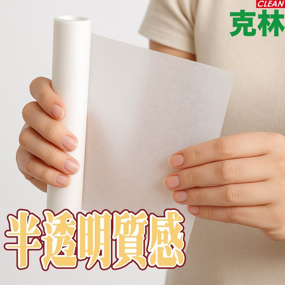 【克林CLEAN】半透明食品級襯紙捲,選用 30g 無螢光劑紙張製成,兼具安全與質感。