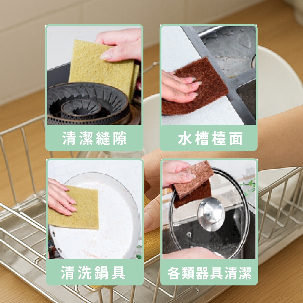 堅韌好握、雙面可用,適合日常洗碗、鍋具油垢、水槽清洗,也能用於浴室磁磚、陽台欄杆、戶外用品去汙保養,真正做到一片多用、全家通用!