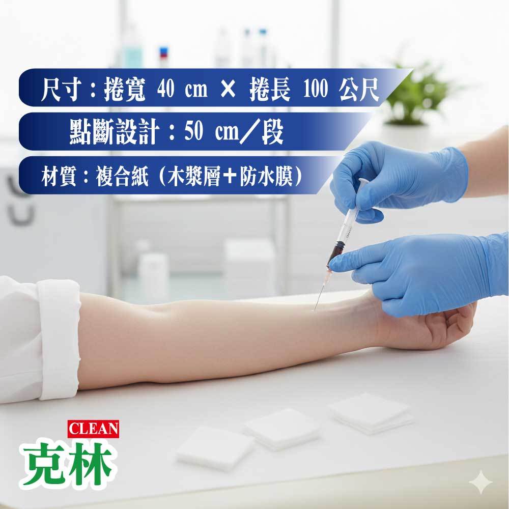 本產品為 「克林CLEAN 」淋膜紙捲,屬於一般環境使用的床面襯墊耗材,